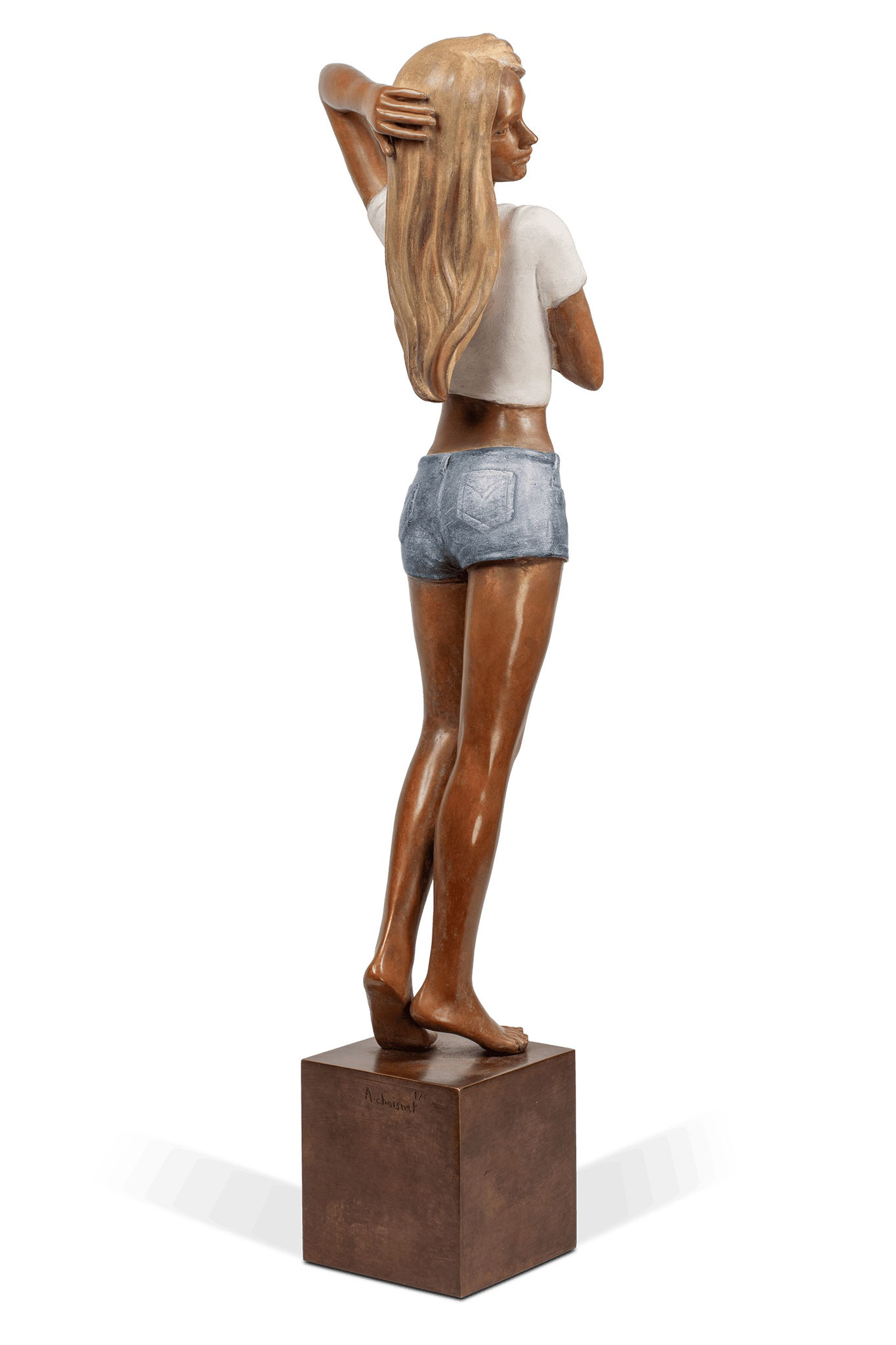 Le bronze me permet de retenir la spontanéité d'un geste dans cette matière presque éternelle. Babeth n’est plus seulement une esquisse de jeunesse, elle devient une affirmation durable, une danse silencieuse offerte au temps. Ce qui m’émeut, c’est cette dualité : la légèreté d’un instant que j’ai saisi, et qui pourtant traverse les époques." AC