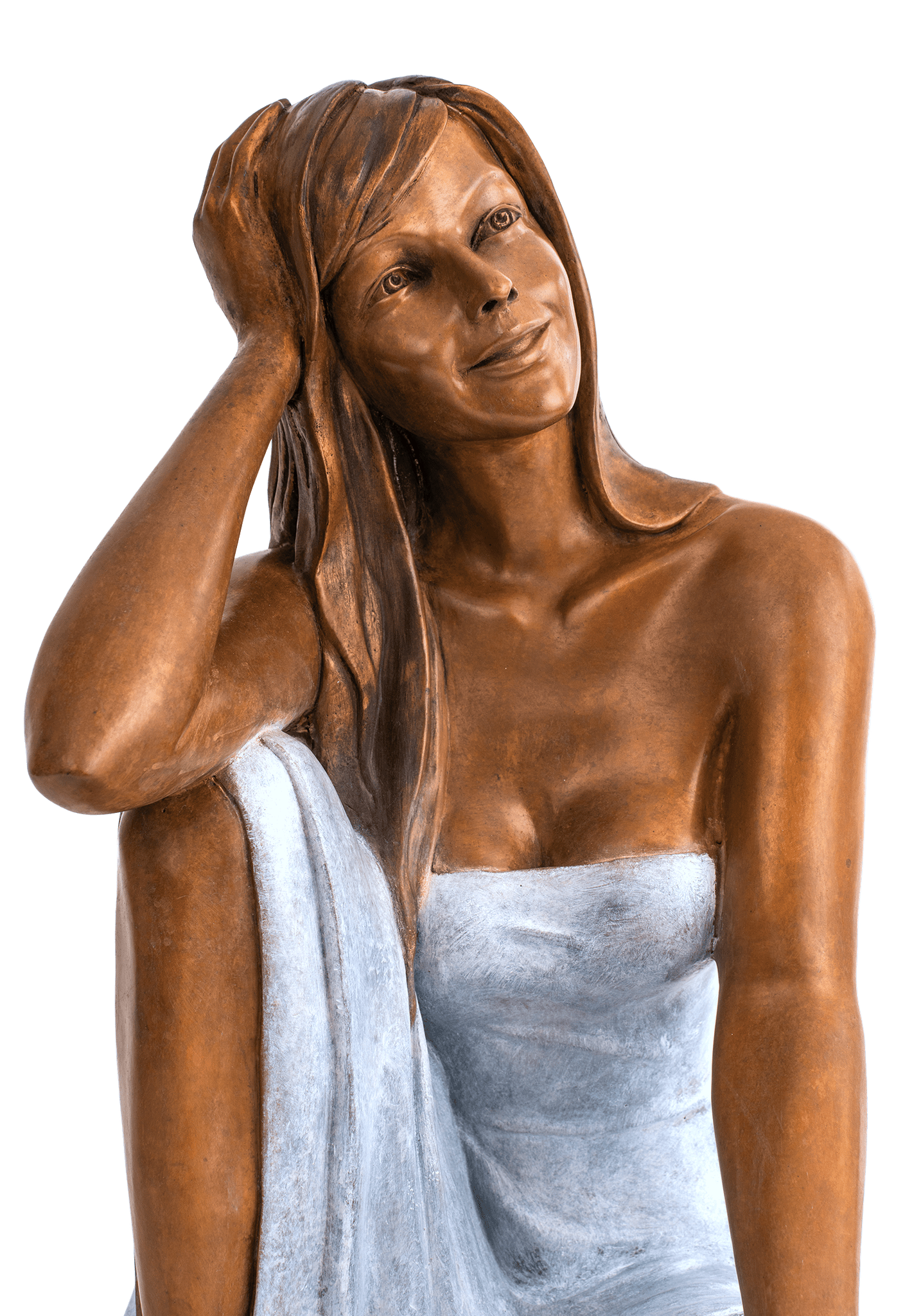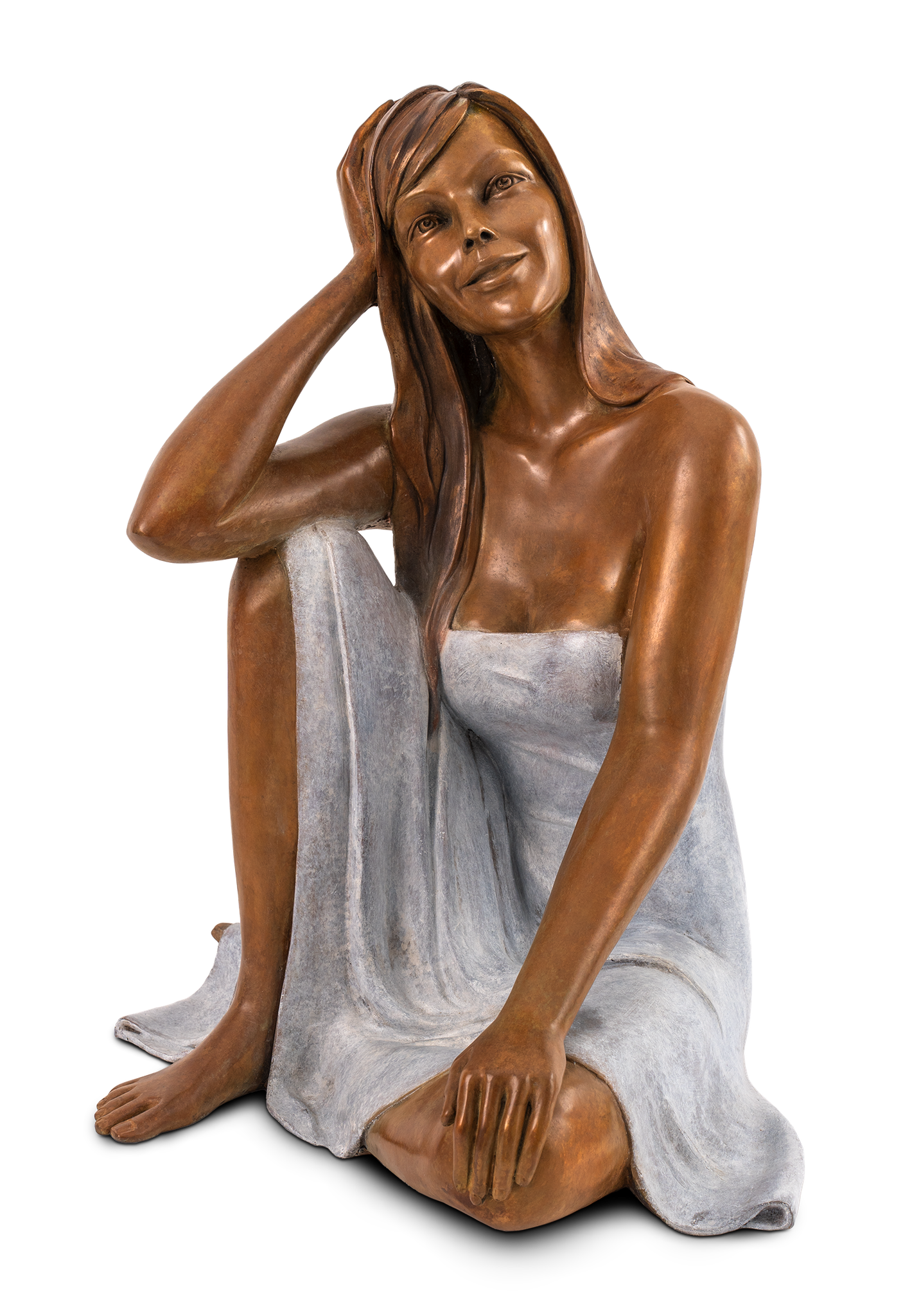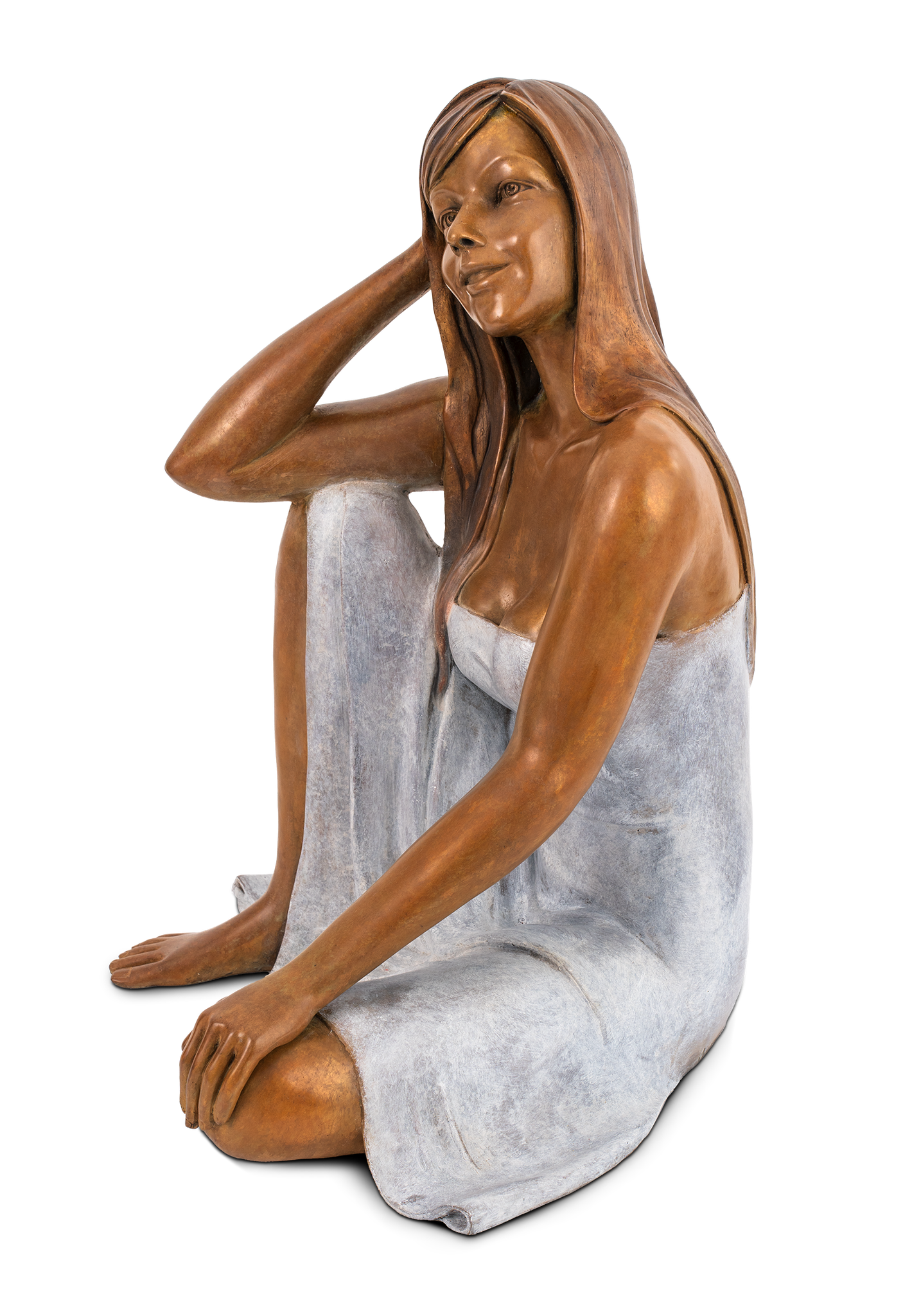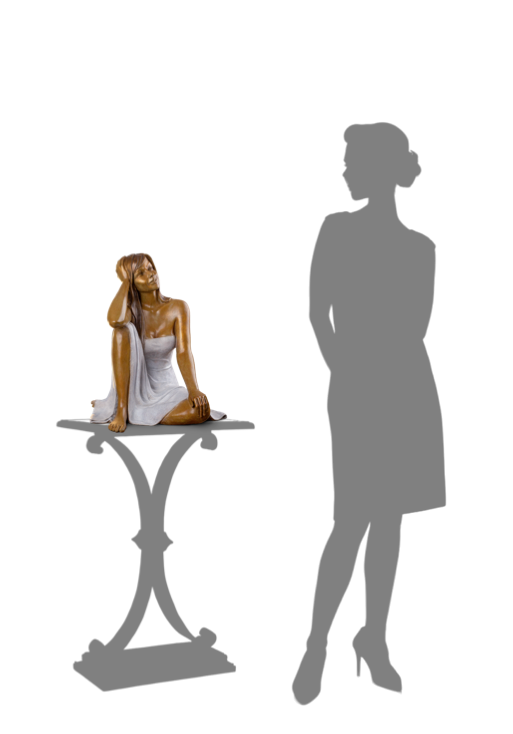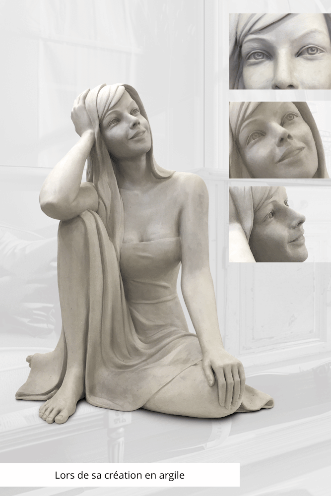 Gracieuse et apaisante, cette sculpture devient source de positivité. La décontraction de son port et la lumière de son regard instaurent une quiétude dans tout espace de vie.