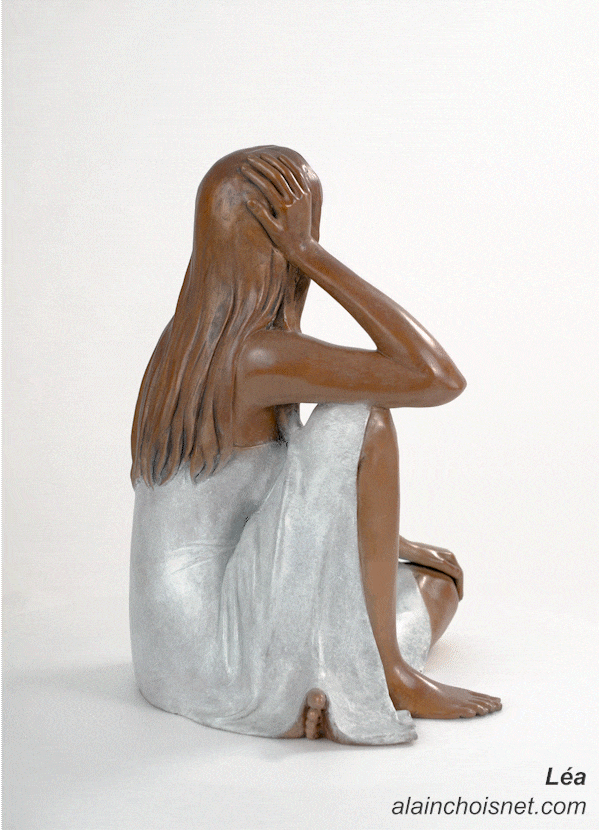 Le bronze m’a permis d’inscrire dans la permanence cette attitude paisible, détachée des agitations du monde. Bien ancrée dans sa pose, elle offre un repère de sérénité et invite à regarder l’avenir avec confiance.“ AC