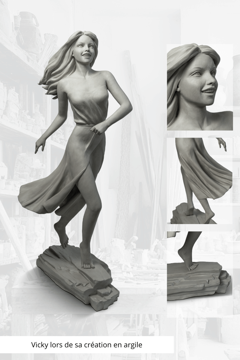 "Je voulais saisir l’élan. Le visage lumineux, le corps en mouvement, la robe emportée par le vent. Vicky est née ainsi : légère, joyeuse, portée par un souffle invisible. Elle court avec cette grâce naturelle, presque insouciante, propre à la jeunesse.