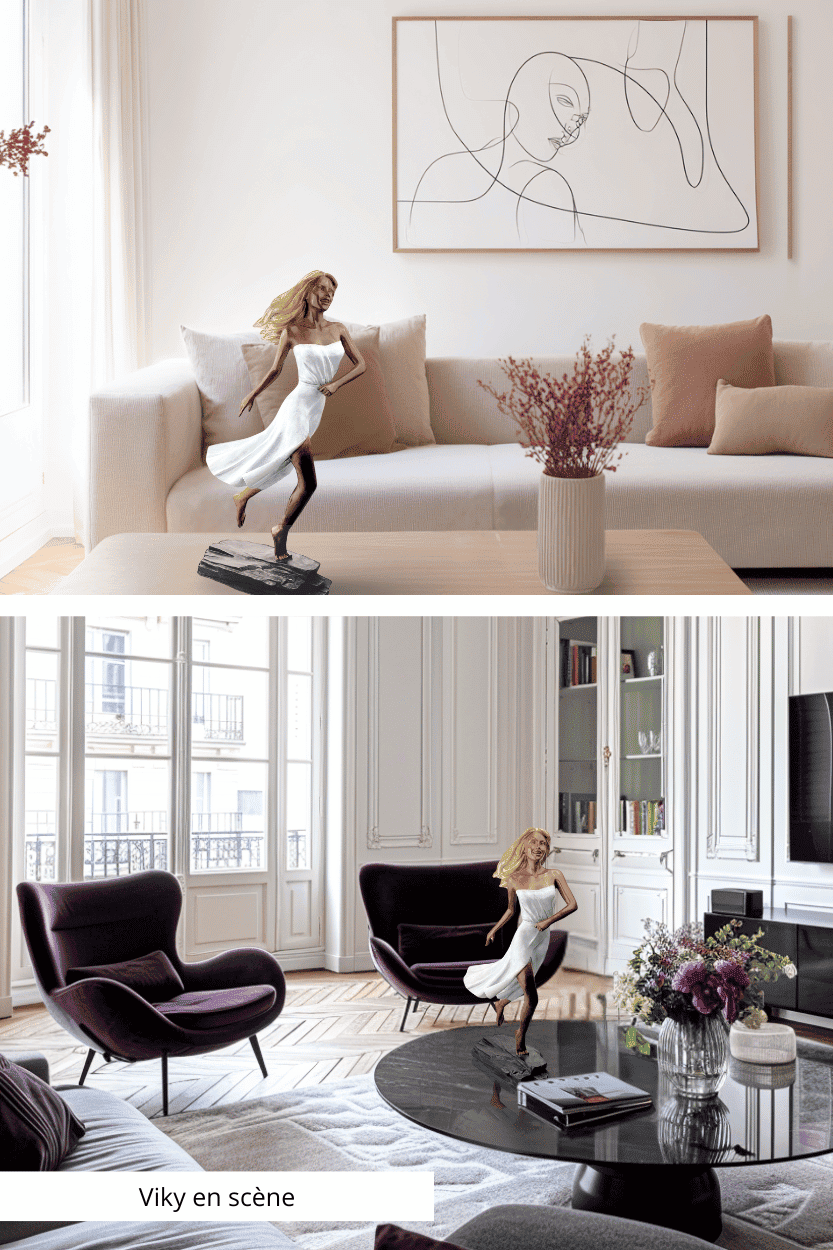 Avec ses 66 cm de hauteur, cette pièce trouve naturellement sa place dans un salon lumineux ou un bureau contemporain. Sa silhouette dynamique attire le regard sans rompre l’harmonie. Elle insuffle à l’espace une note fluide, aérienne, un souffle d’élégance en mouvement.