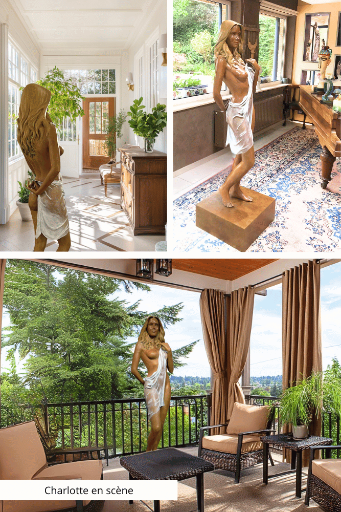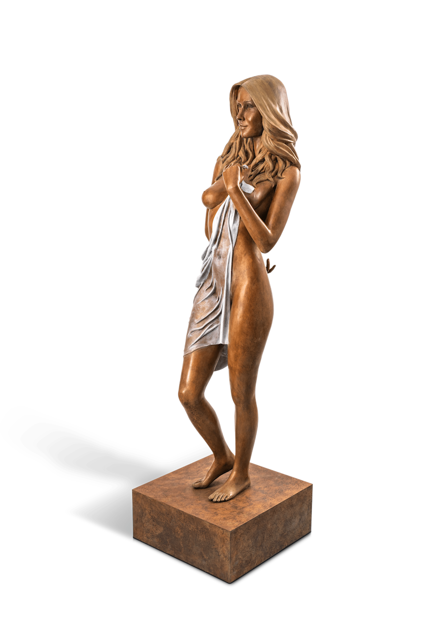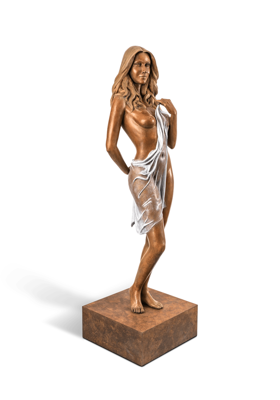 J'ai souhaité ancrer cette sculpture dans une esthétique plus contemporaine. C’est notamment par le choix d’un drapé transparent que j'ai voulu l'exprimer — un voile qui suggère, apportant à la forme plus de légèreté." AC