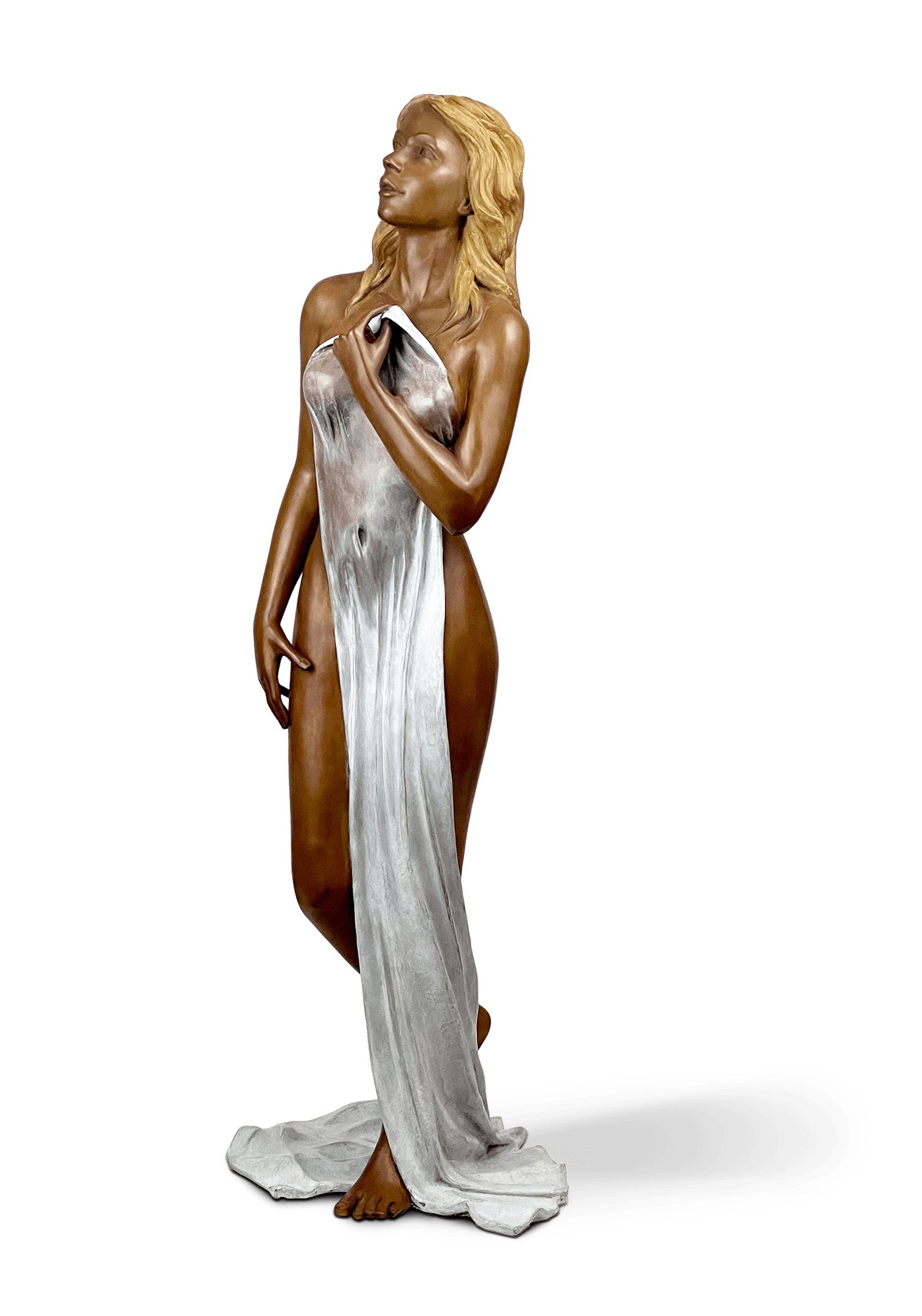 Au passage au bronze, j’ai découvert une profondeur nouvelle. J’ai craint que le métal ne lui durcisse les traits, mais au contraire, son air légèrement interrogatif s’est affirmé, quel que soit l’angle de vue. Elle reste toujours empreinte d’une grande sincérité, semblant attendre une réponse venue d’en haut." AC