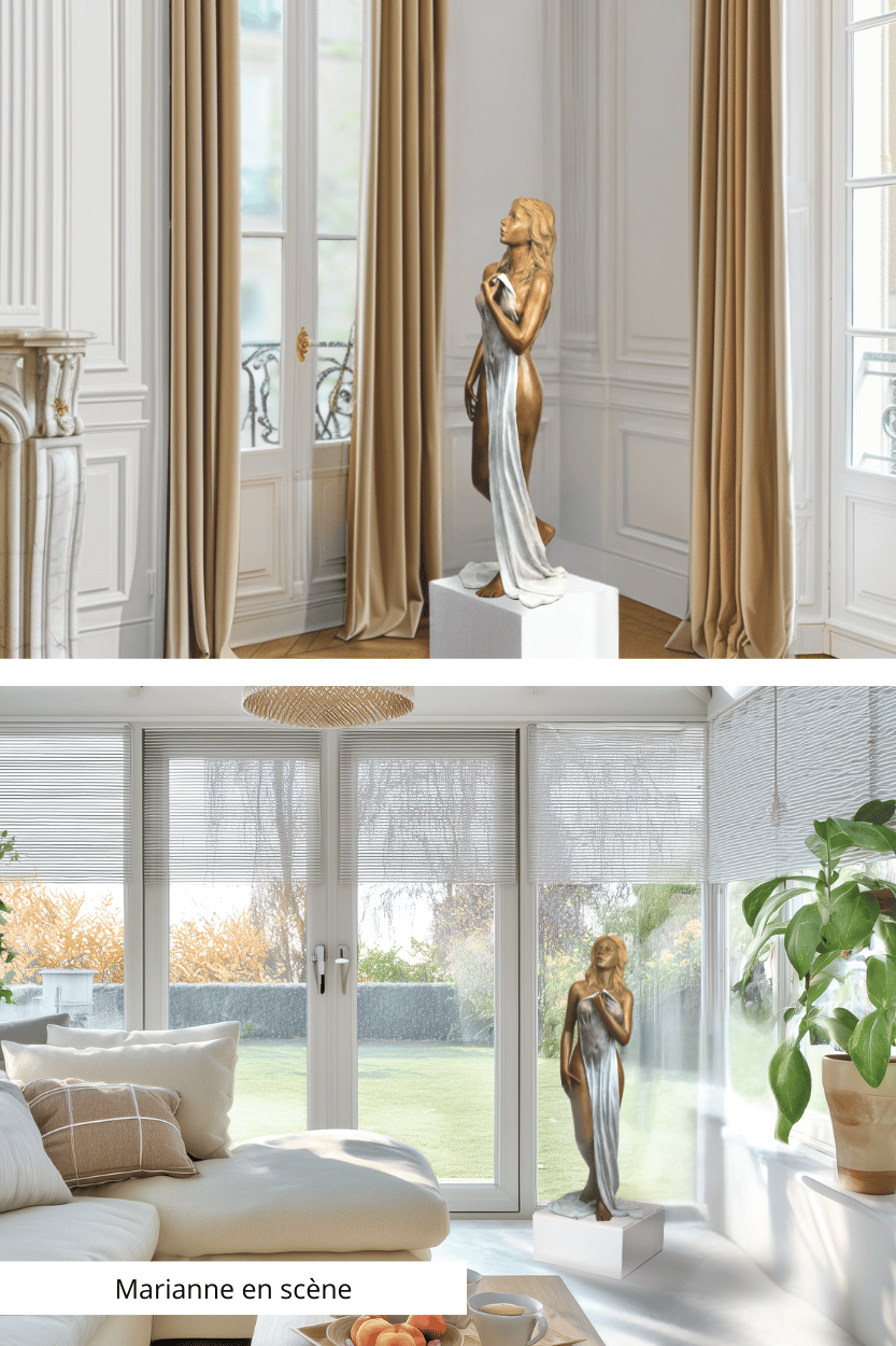 "Marianne exprime une candeur naturelle, sans rien de feint dans son attitude. Née d’un élan instinctif, j’ai laissé la forme se révéler au fur et à mesure. Le drapé, lui, a exigé plus d’attention afin de trouver sa juste place, sans dominer l’ensemble.