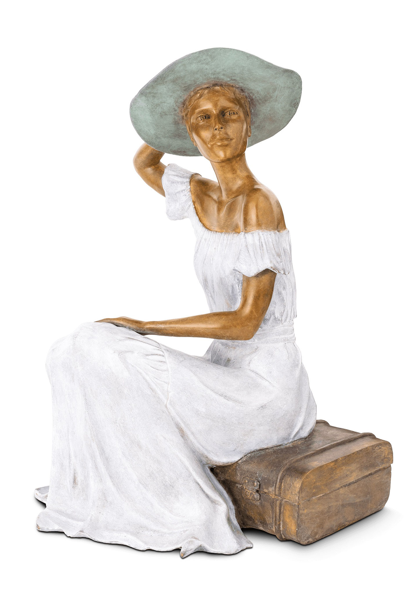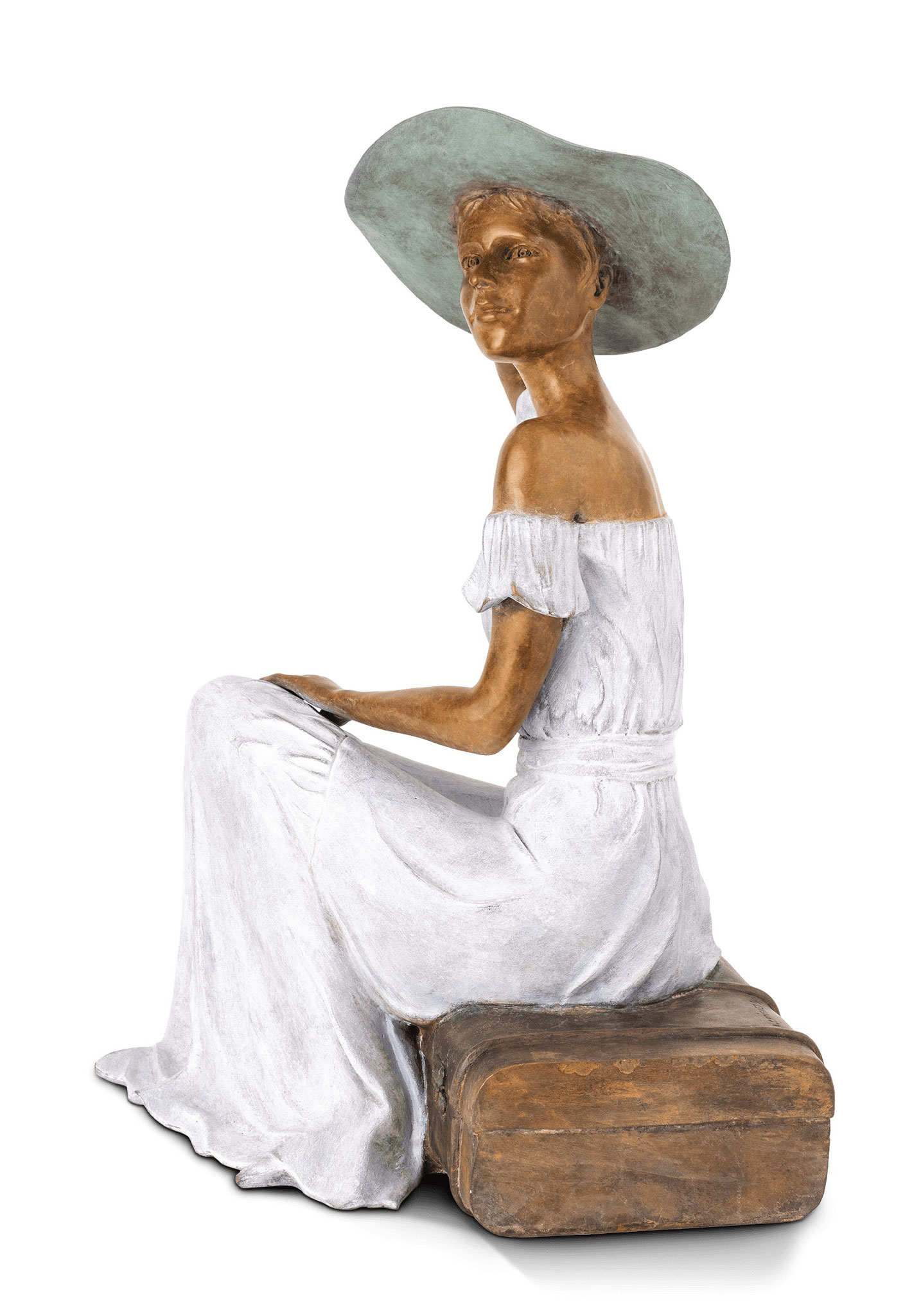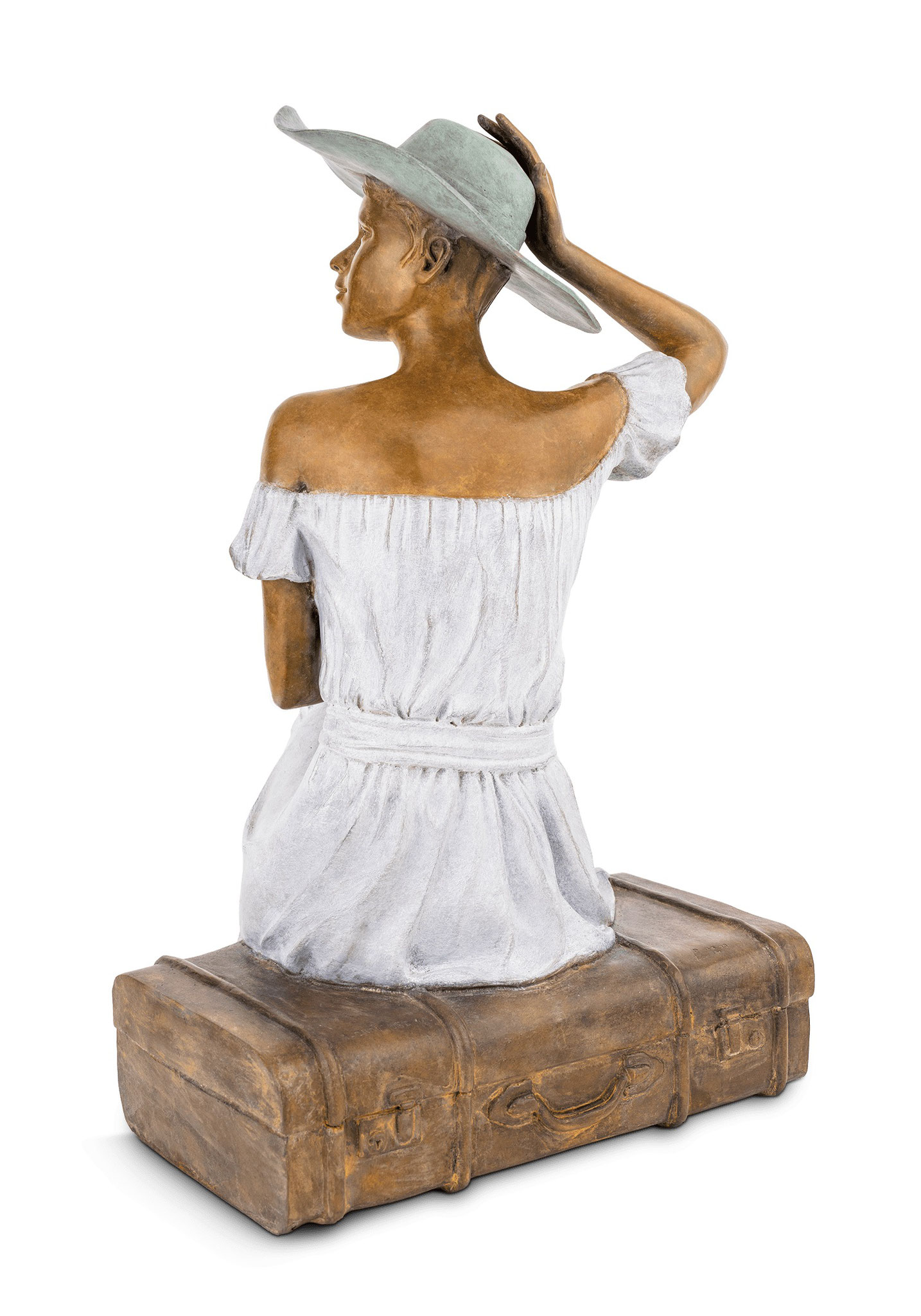 "Je voulais inscrire une note de romantisme, une candeur juvénile, presque insouciante, à cette voyageuse. L'argile m’a permis de saisir cette émotion délicate, ce moment suspendu entre le rêve d’ailleurs et une certaine retenue. Elle est née ainsi, avec cette grâce tranquille, sans urgence, évoquant l'élan discret de celle qui s'ouvre au monde.