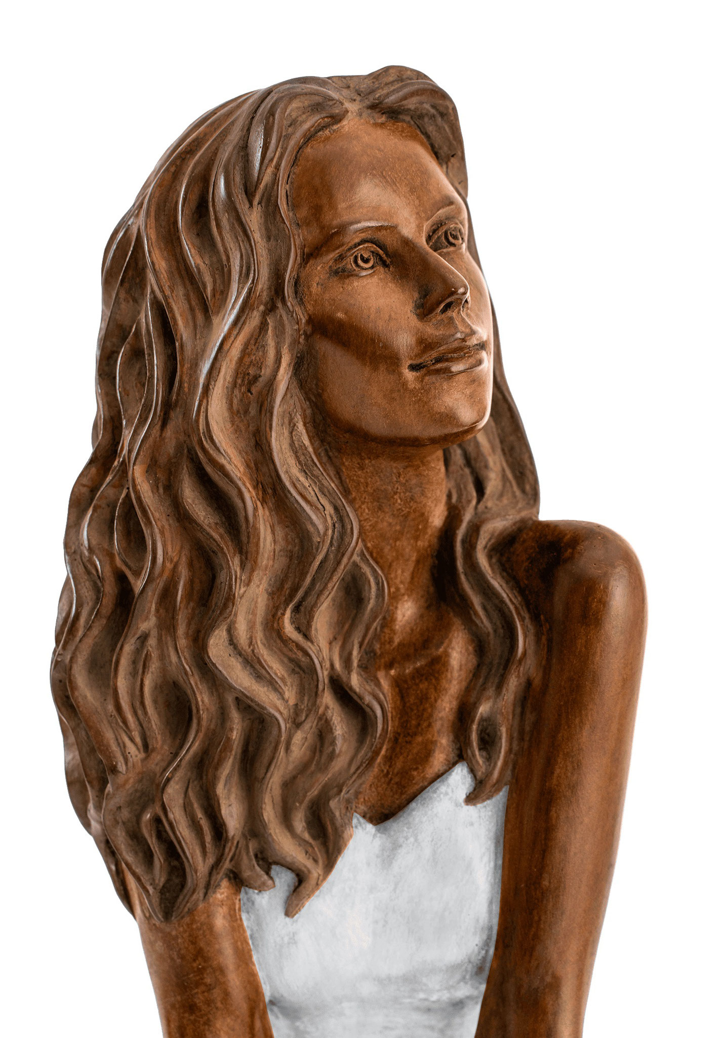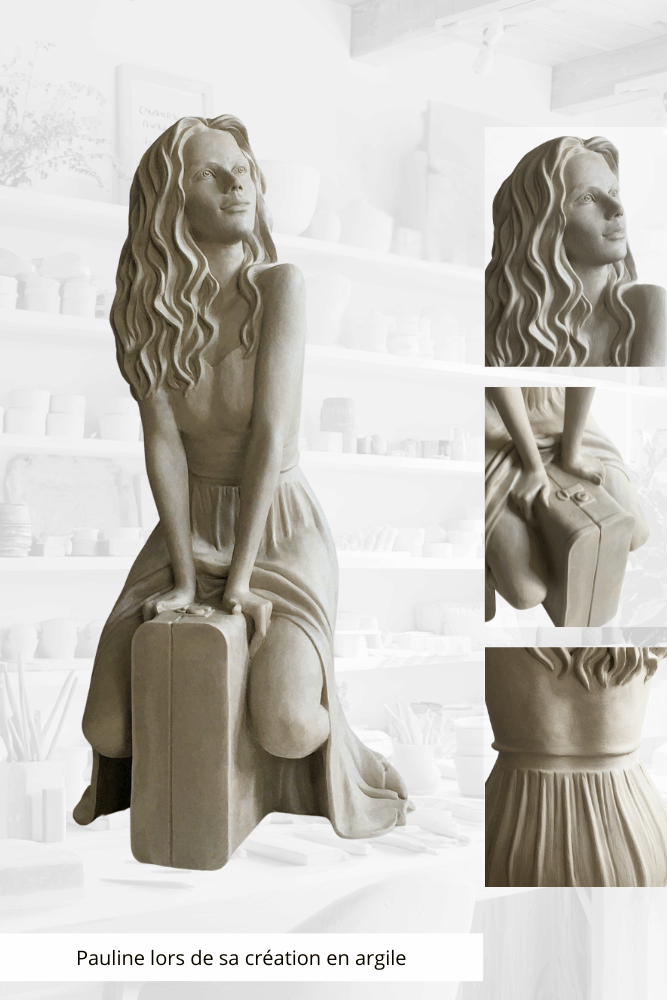 “J’ai sculpté Pauline dans une posture volontairement non conventionnelle, pour souligner sa jeunesse. Elle déjoue les codes de la féminité avec une touche d’espièglerie. Son regard accroche sans détour, sa présence est entière. Sa pose instable suggère déjà le mouvement à venir.