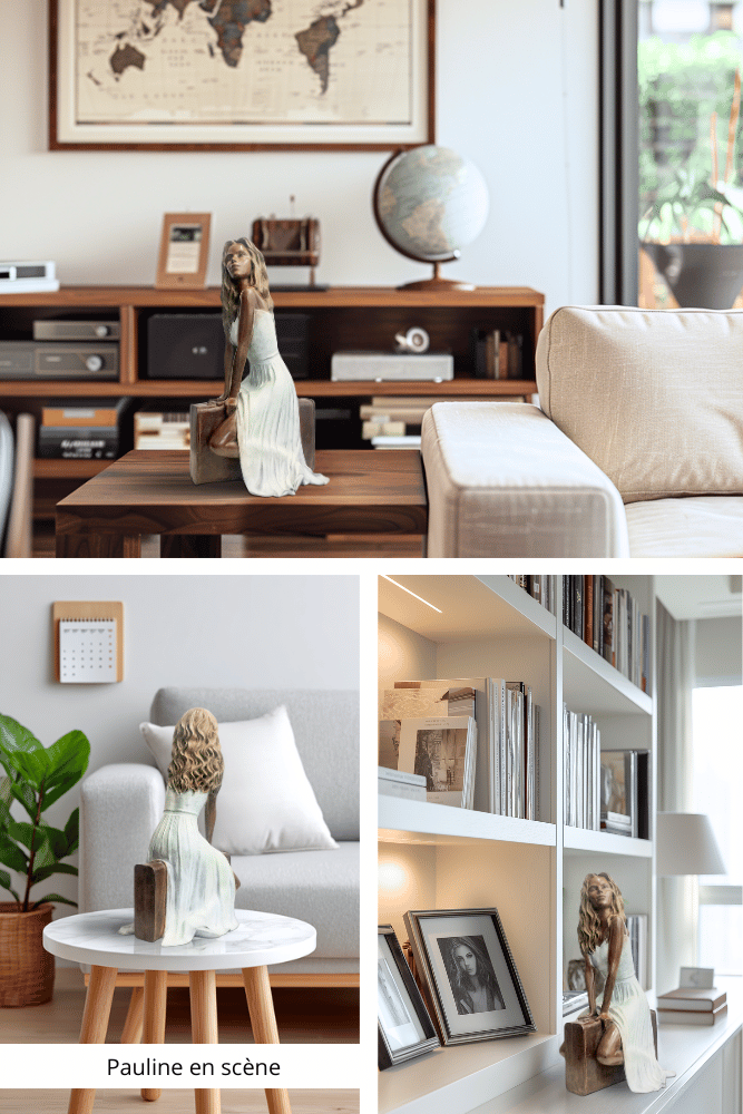 Pauline s’invite dans vos espaces comme un personnage de passage. Elle intrigue par son allure décontractée, un brin décalée. Elle rappelle qu’on peut s’arrêter, rêver, attendre sans hâte – et savourer ces pauses précieuses, juste avant de prendre un nouveau départ.